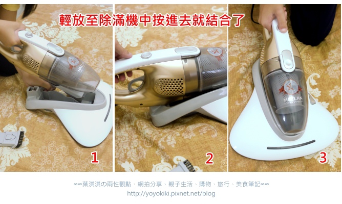只要將吸塵器放在除螨機中,輕輕卡進去就可以結合了.