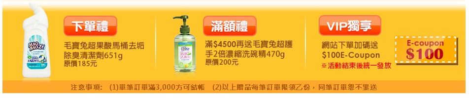3、每筆訂單有送毛寶兔超果酸馬桶去垢除臭清潔劑一瓶。