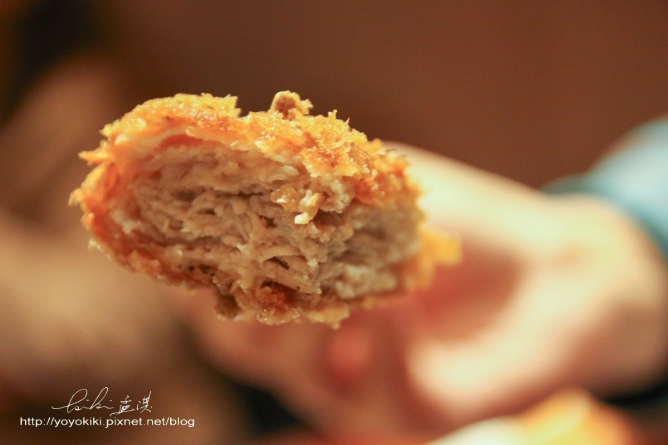 最特別的是夾起這個炸豬排後,看到裡面竟然不是整塊的豬排,而是將豬排切成超薄片狀,再疊上25層,最外面再裹上麵包粉下去炸,把所有的肉汁都鎖在裡面,吃起來不只香味四溢,肉汁的飽滿甜味更是整塊豬排的精髓所在,吃起來真的是太美妙了阿︿︿