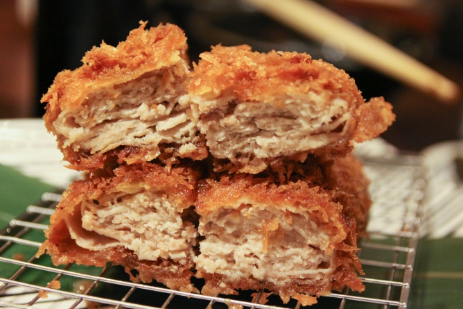看看這一層層疊起來的豬排,真的超費工的耶!!能夠吃到這麼好吃的豬排真的覺得好滿足~